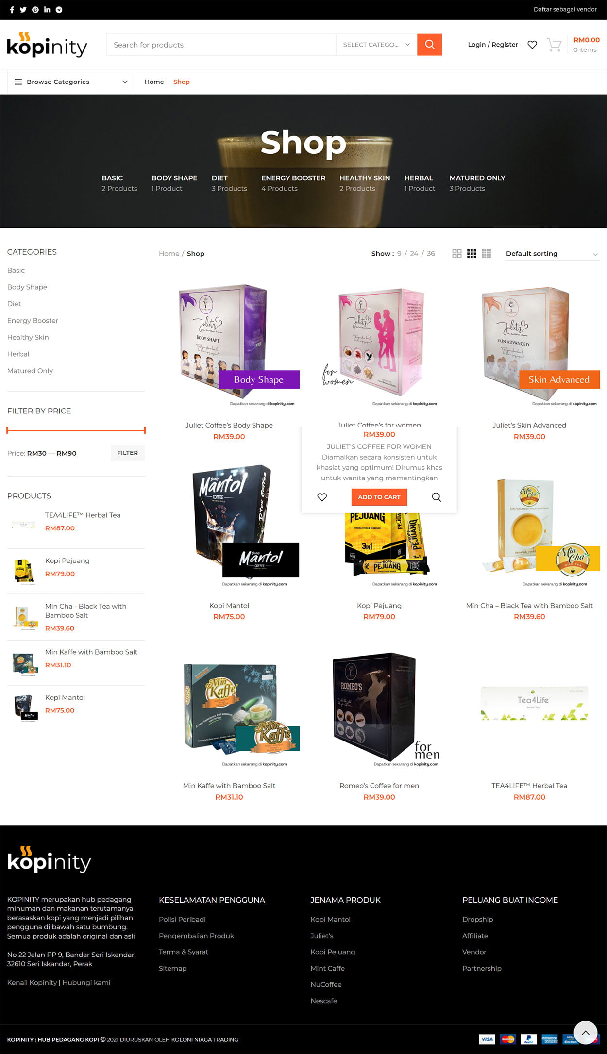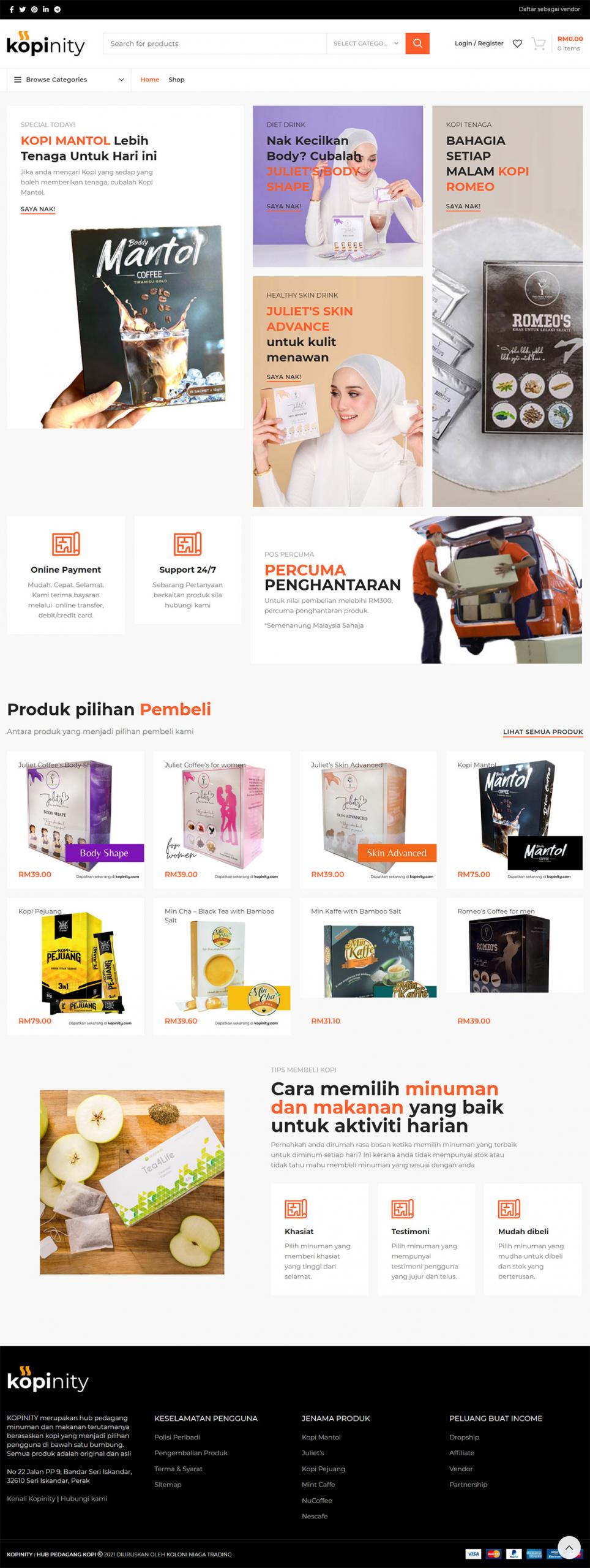 Kopinity is an ecommerce store that selling multi brand coffee under one roof
